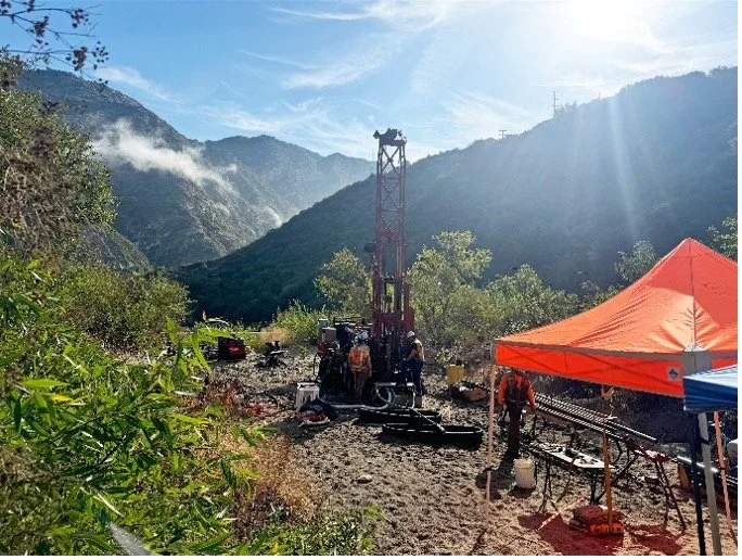With Malibu Canyon’s narrow and severely limited access, a Boeing CH-47 Chinook helicopter was required to transport specialized equipment to the dam site for geotechnical studies. Supplies air dropped to the site included a drill rig, small excavator, front end loader, metal bridge, side-by-side ATV, tools and other supplies.