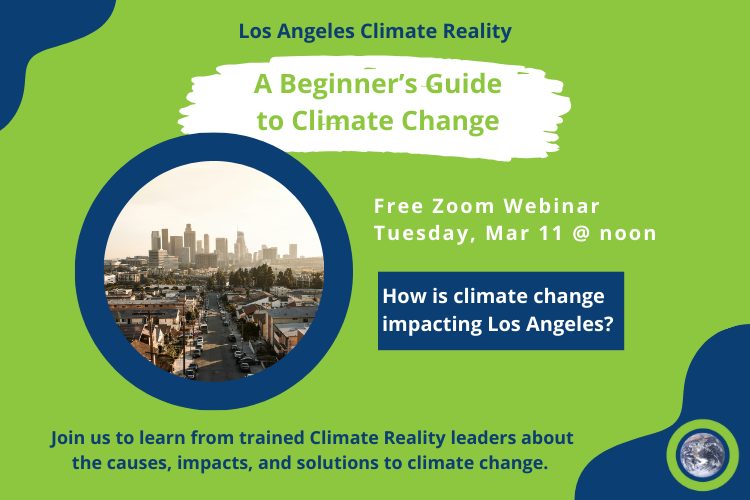 LA Climate Reality welcomes all to this webinar about how climate change is impacting Los Angeles and what we can do about it.