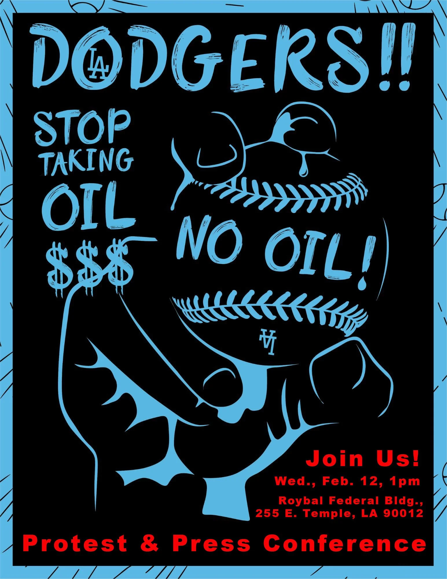 On Thursday, March 27, at 2:00 p.m., environmentalists and other Dodgers fans will gather for a press conference and rally to step up their demand that team owners cut ties to Big Oil and drop their Phillips 66 sponsorship. T-shirts will be given out and there will be signs in English, Spanish and Japanese, so it will be a Tri-lingual protest!
